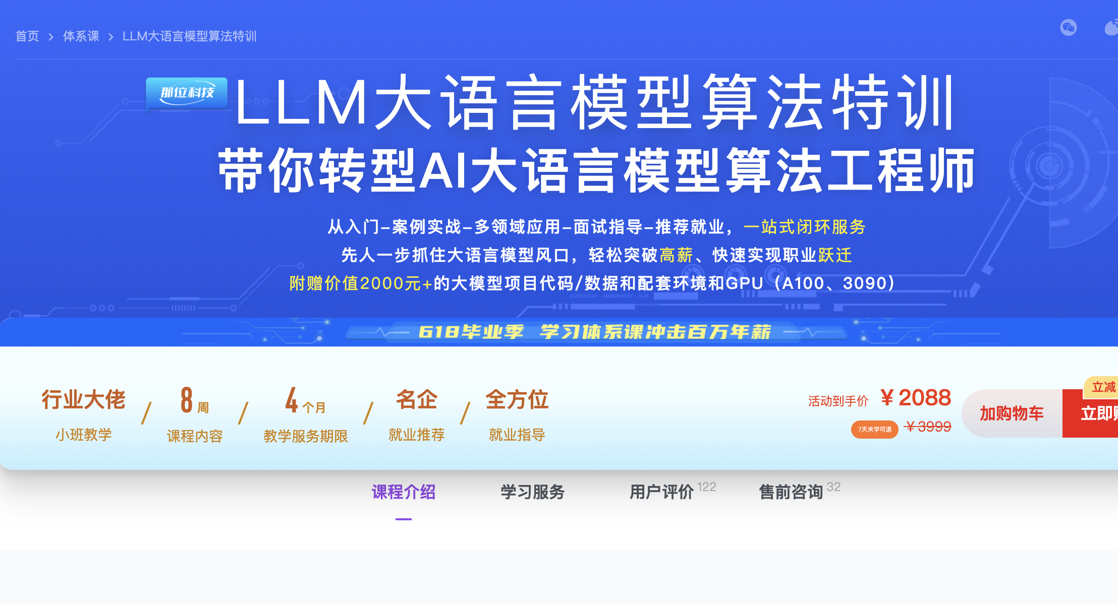 体系课,LLM大语言模型算法特训,带你转型AI大语言模型算法工程师